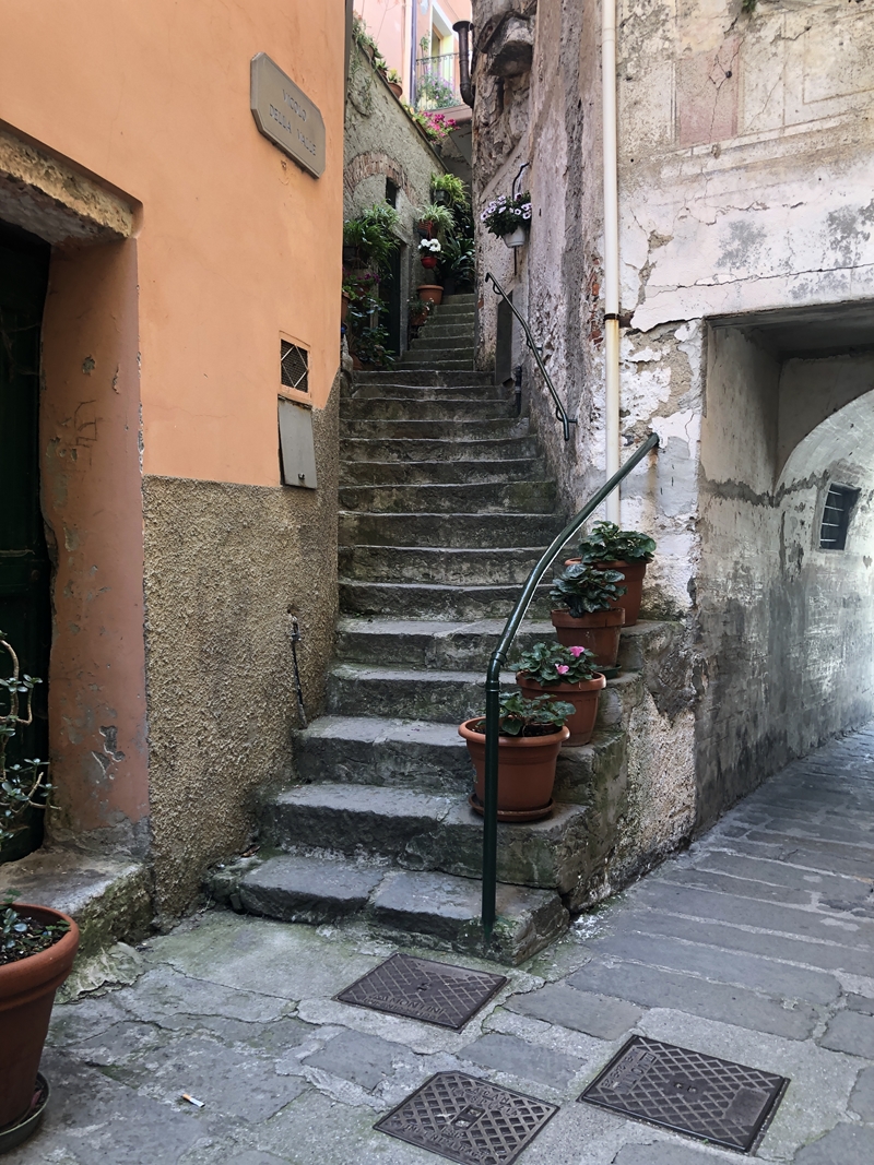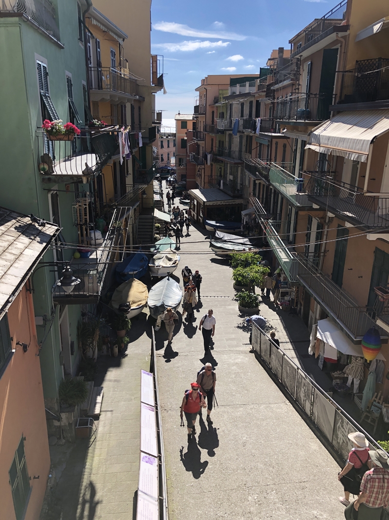 Main street of Vernazza from the train station. It took us a while to get into our room at the Vernazza Rooms and Apts. but we eventually got a code to get our key.