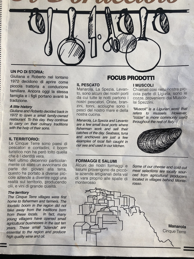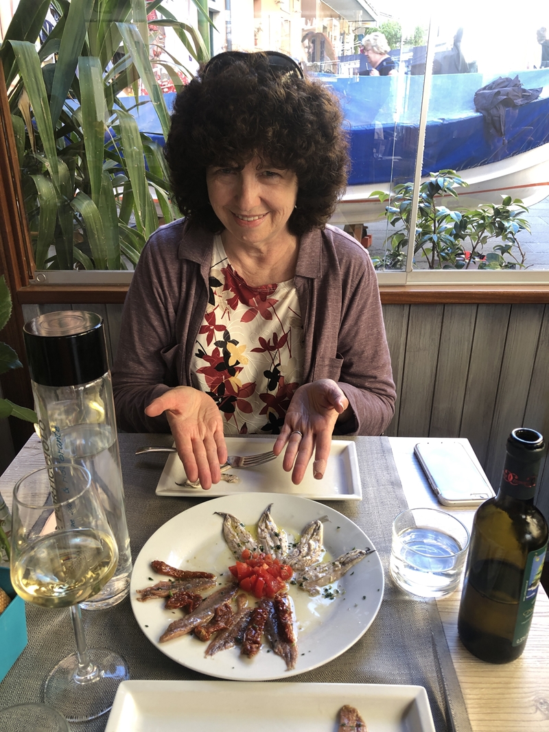 We had seen a Rick Steve's video recommending anchovies in the Cinque Terre. I found them to be ok, not a taste I was used to. I could see getting to really like them after a while. Five were cooked in olive oil and the other 5 were salted.