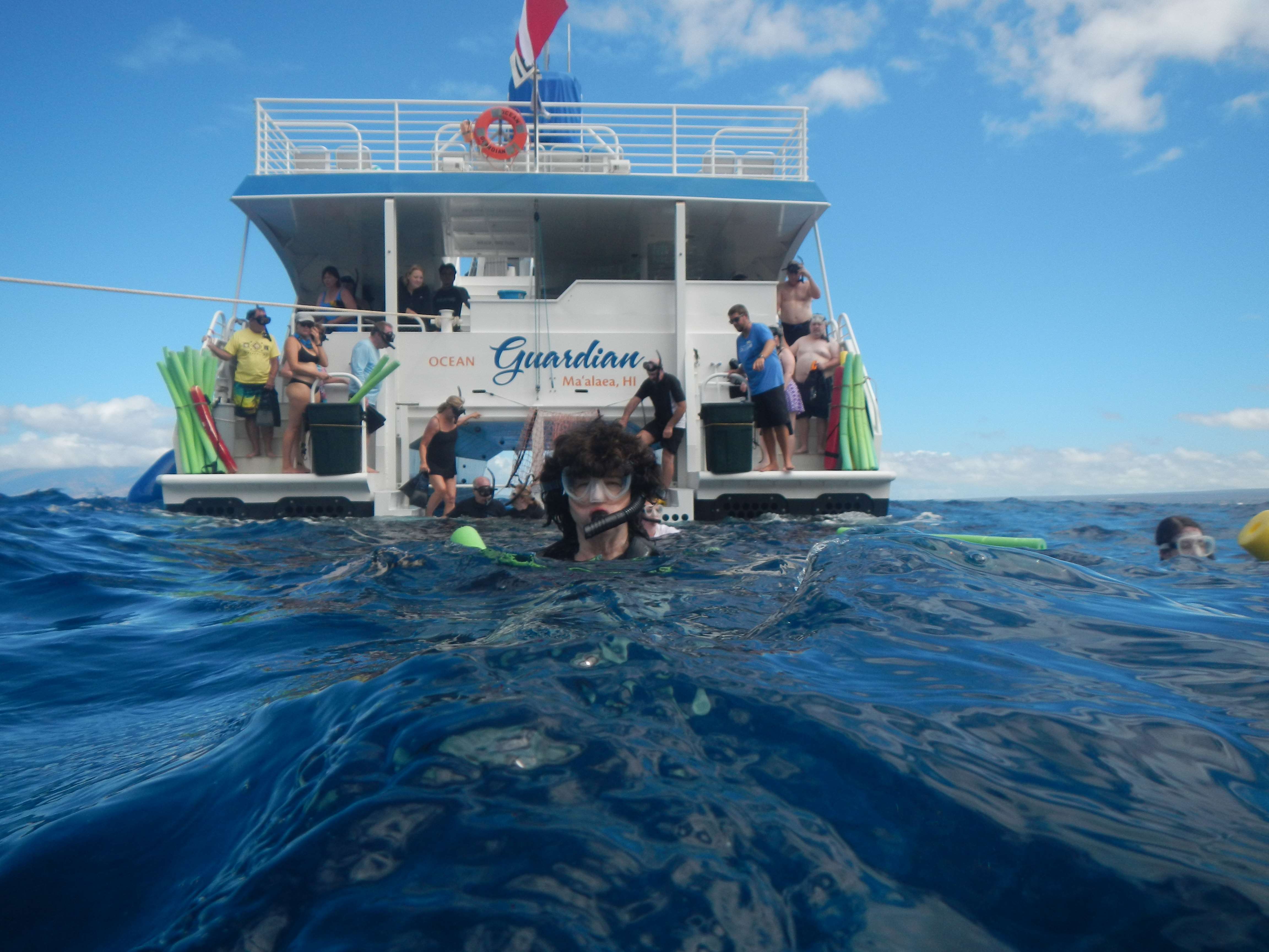 The horse shoe shaped shoal (Molokini) is where we went snorkeling.