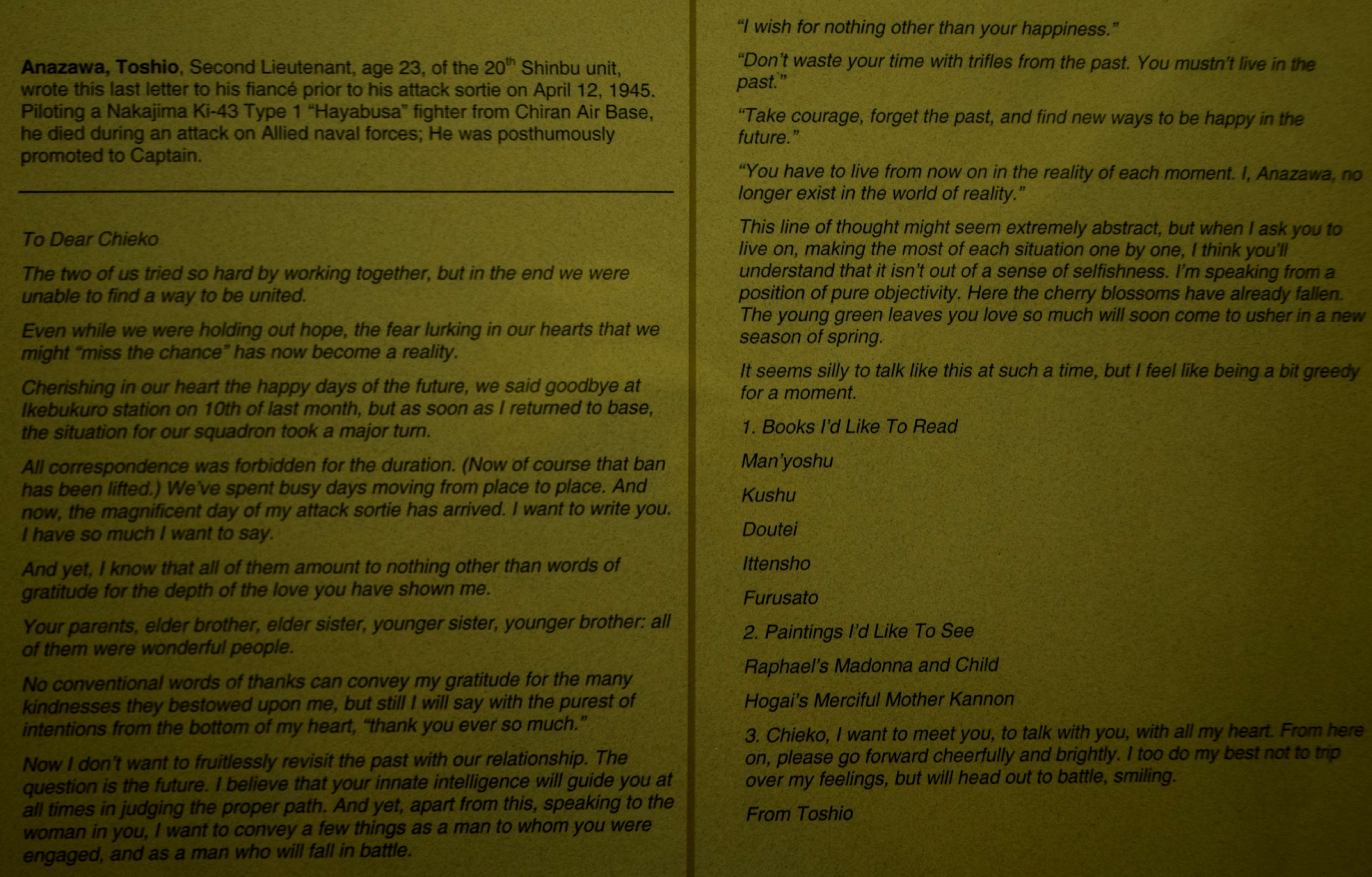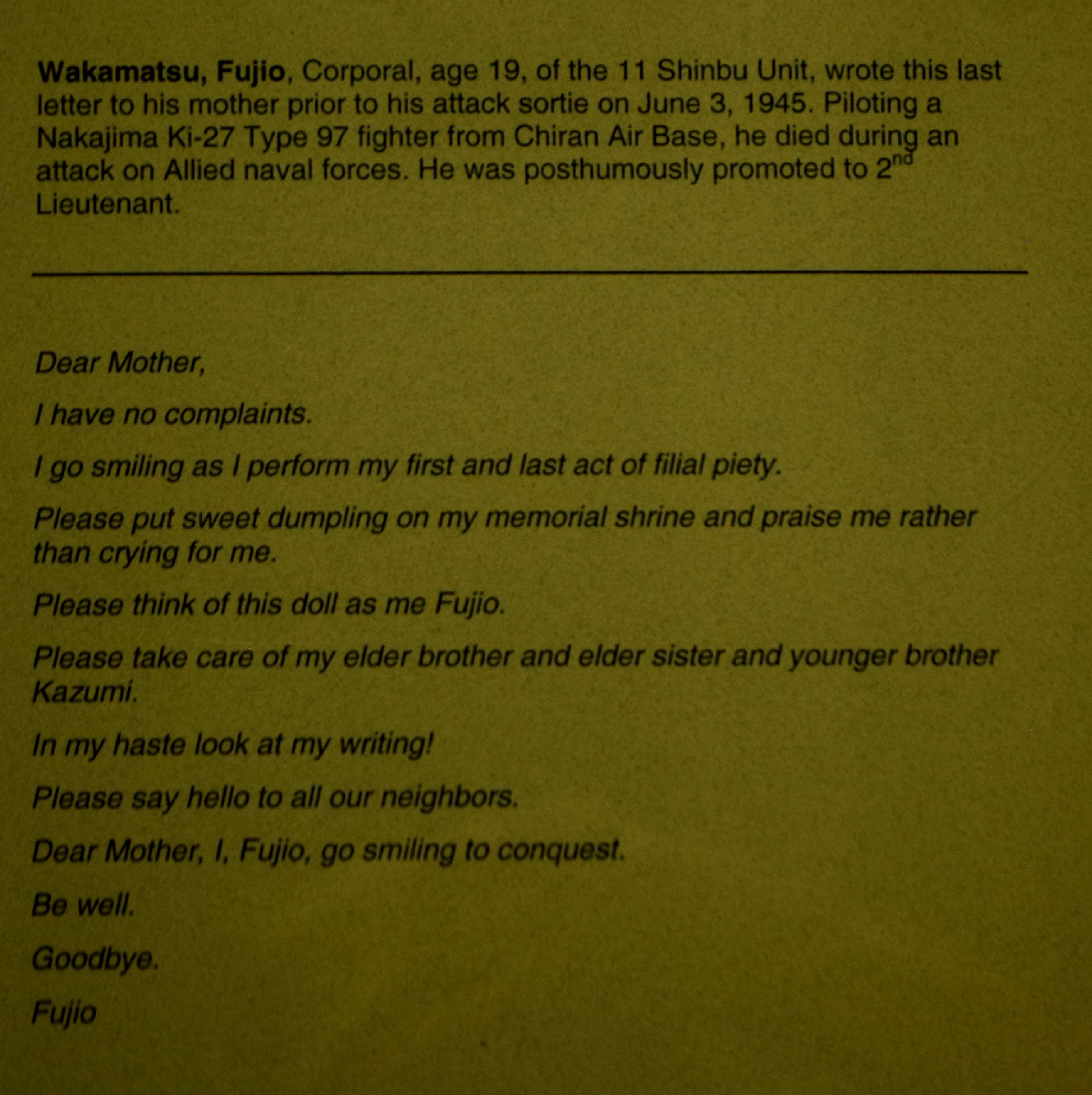 Poignant letters from young Kamakazi pilots shortly before they took off to try and kill our young sailers.