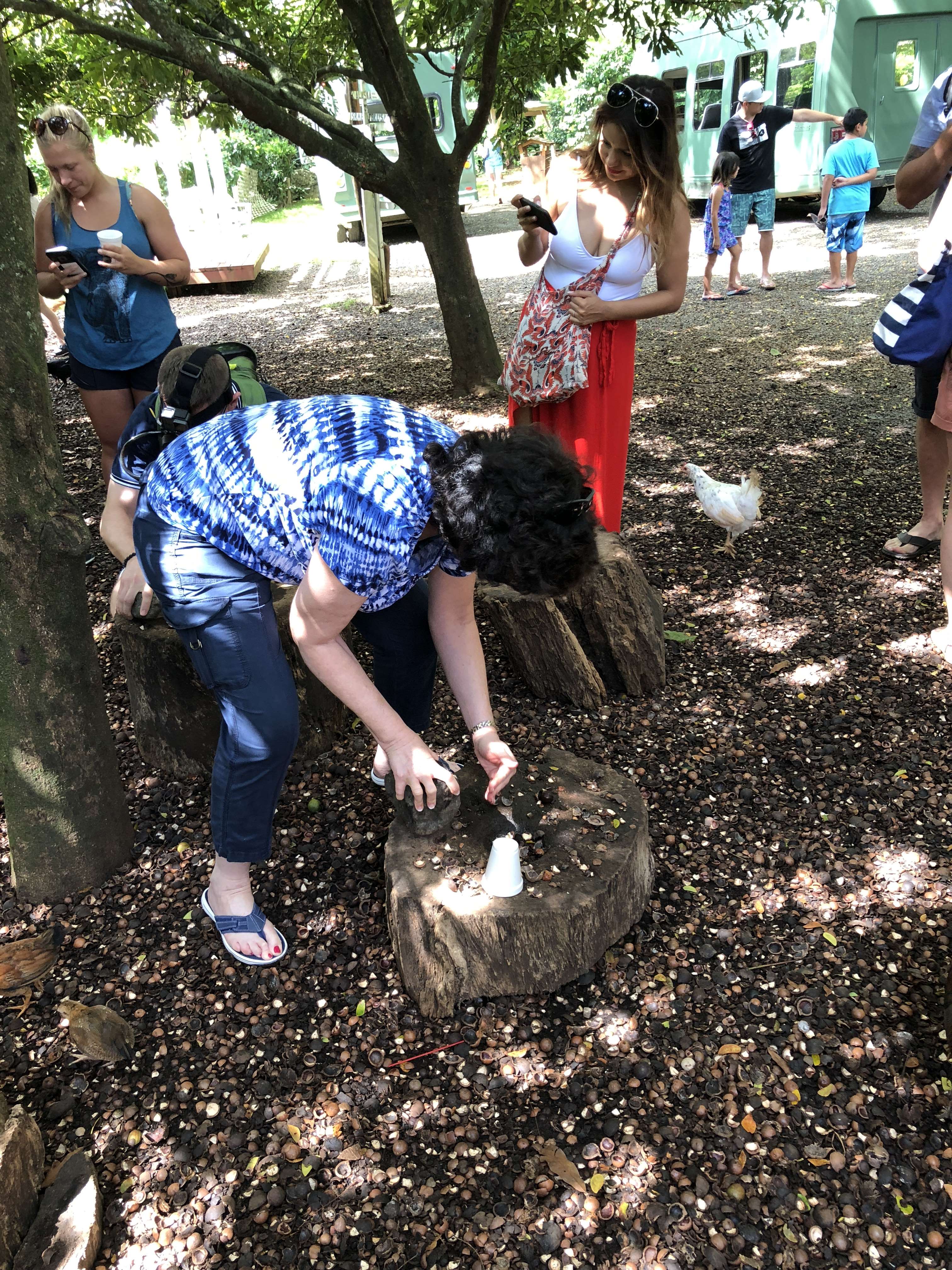 A macadamia store where they let you crack some nuts in a nice area behind the sales area.