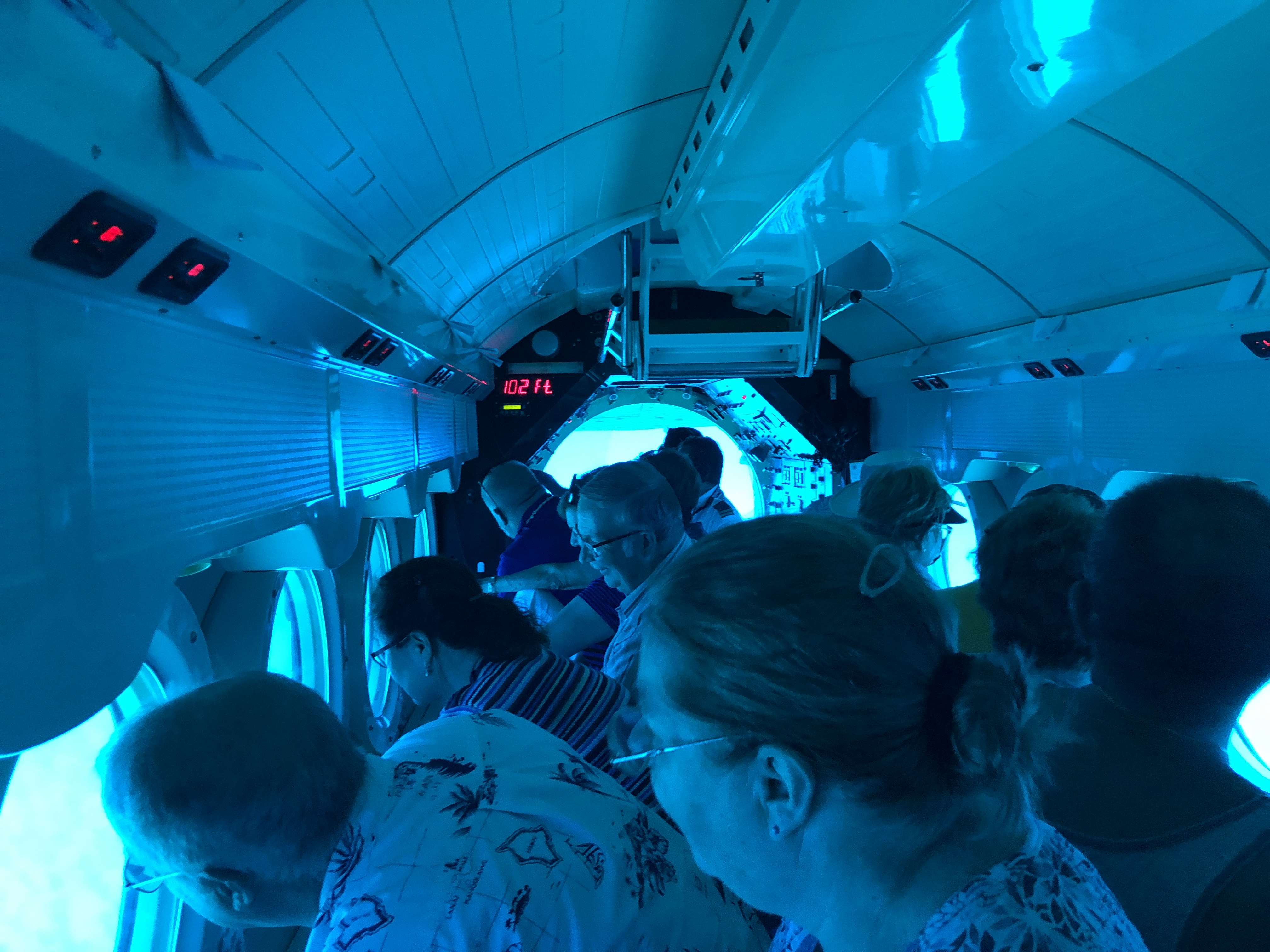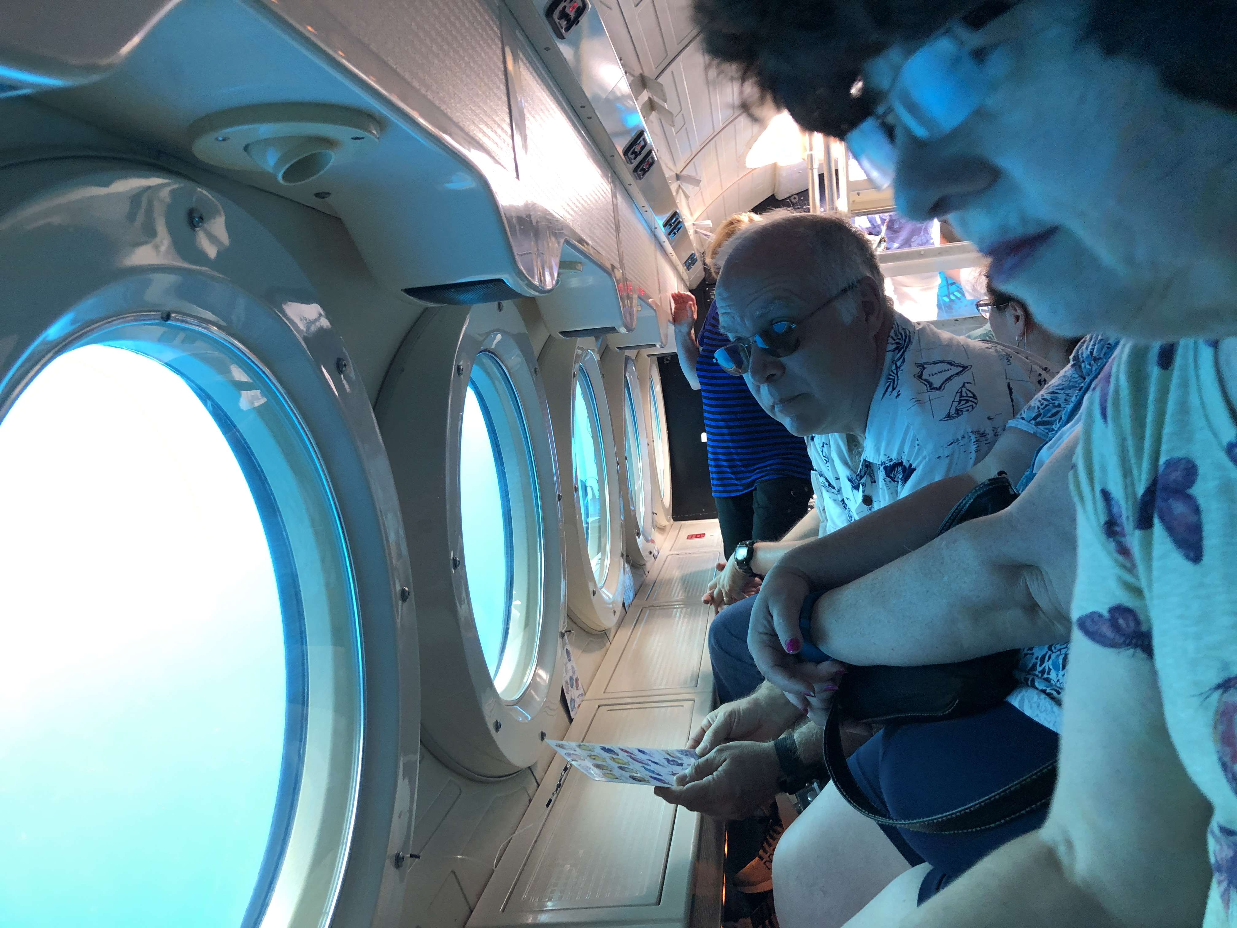 We signed up for a tour. It was raining really hard soon after we started but let up later. We went to a coffee exhibit, had lunch at an artists compound and went to an arboretum from Kona and did a submarine excursion (Atlantic) island tour from Kona.