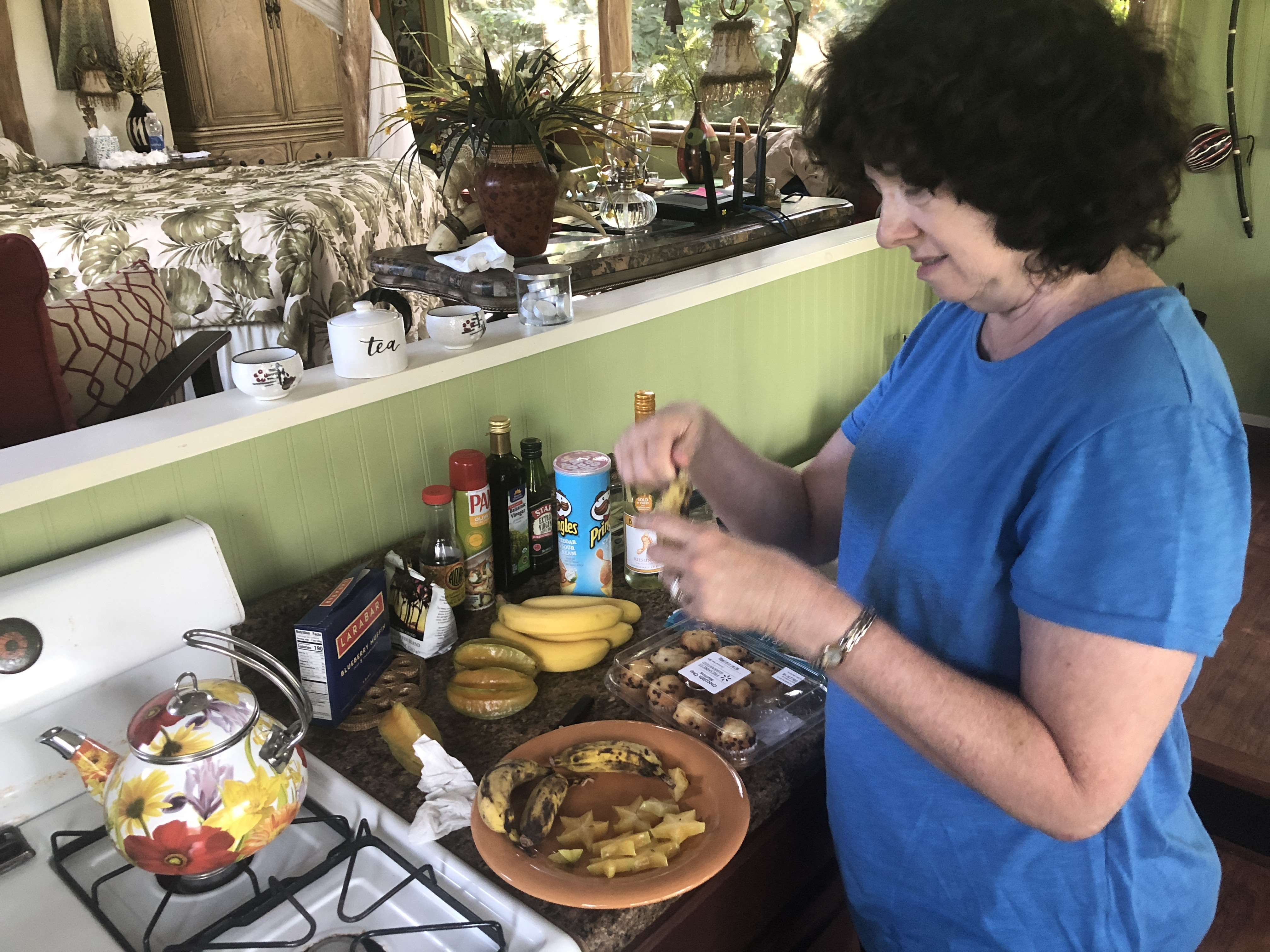 We had rented a place called the Jungalo. It took us a while to find the place and we were getting a bit worried what it would be like. Our friends, Carrie and Stuart, had recently told a story about a stay in a similar sounding place and what a disaster it was. It was wonderful. The place was screened in on three sides. We had limited solar powered electricity but it wasn't a problem.