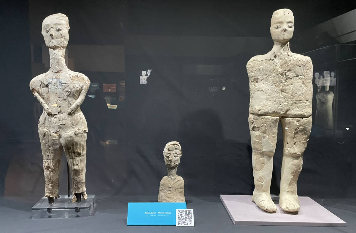 Amoung the oldest large-scale statues in the world. Made of reed frames covered with plaster. Radiocarbon dating gives dates for these towards the eighth millennium BC. 1:53.
