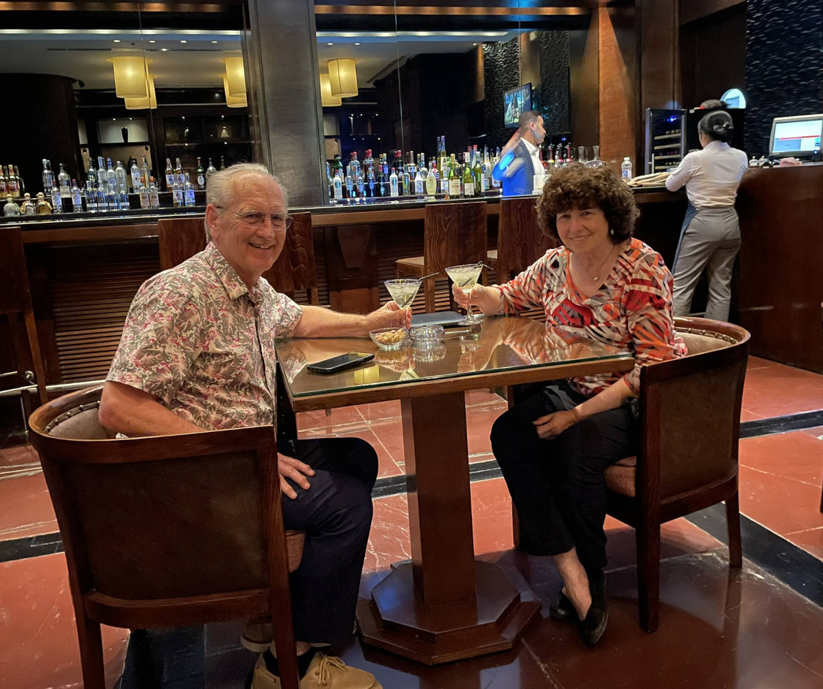It's Wednesday so later that evening we have a Martini at the hotel bar and listen to two female singers from Italy. 9:02.