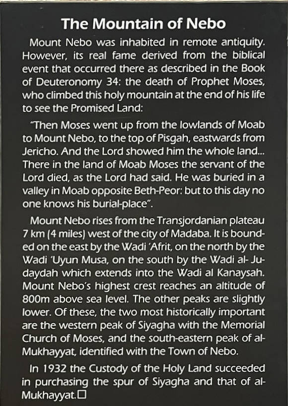 We go to Mt. Nebo. This is the location where Moses got his look into the promised land. 10:00