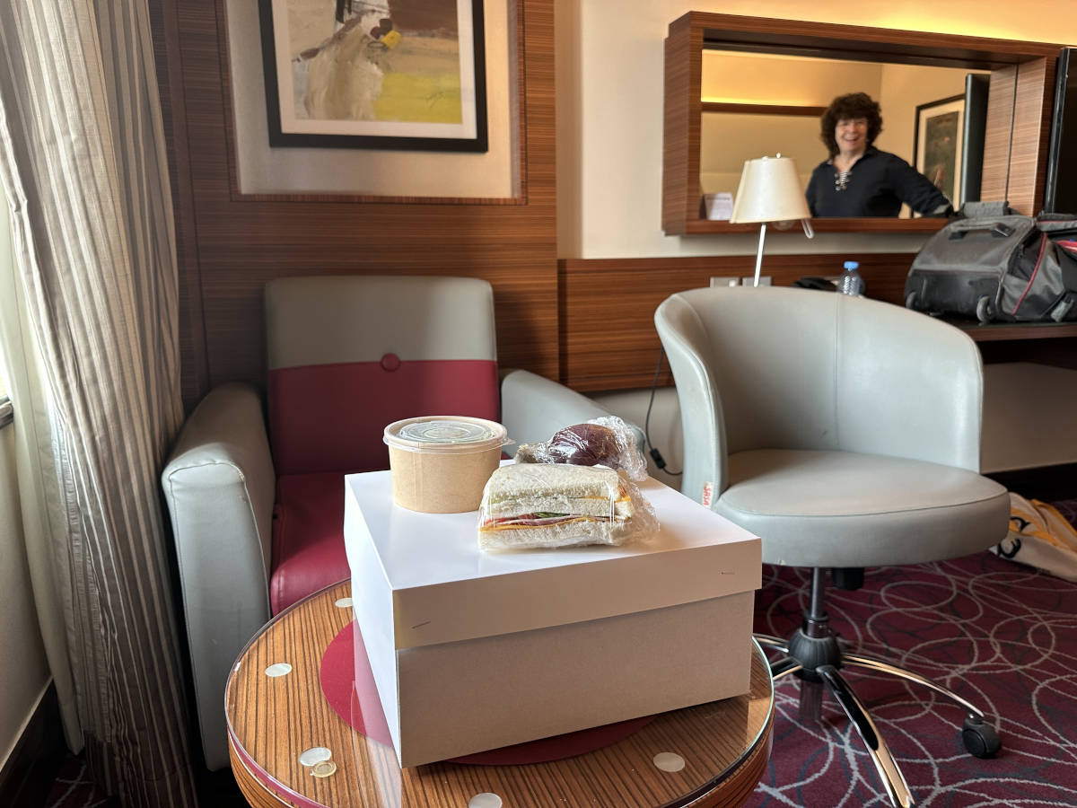 The hotel had box lunches waiting for us at check-in. We didn't get into them right away. 8:54