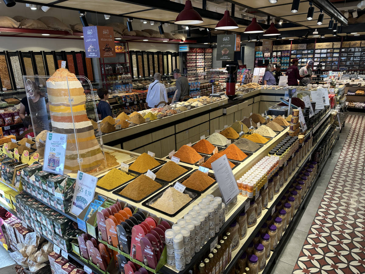 On our way out of town we stop by a store and buy some spices. Issam said this was a good place to get containers of the seven spice combination used in Jordanian cooking. 9:11