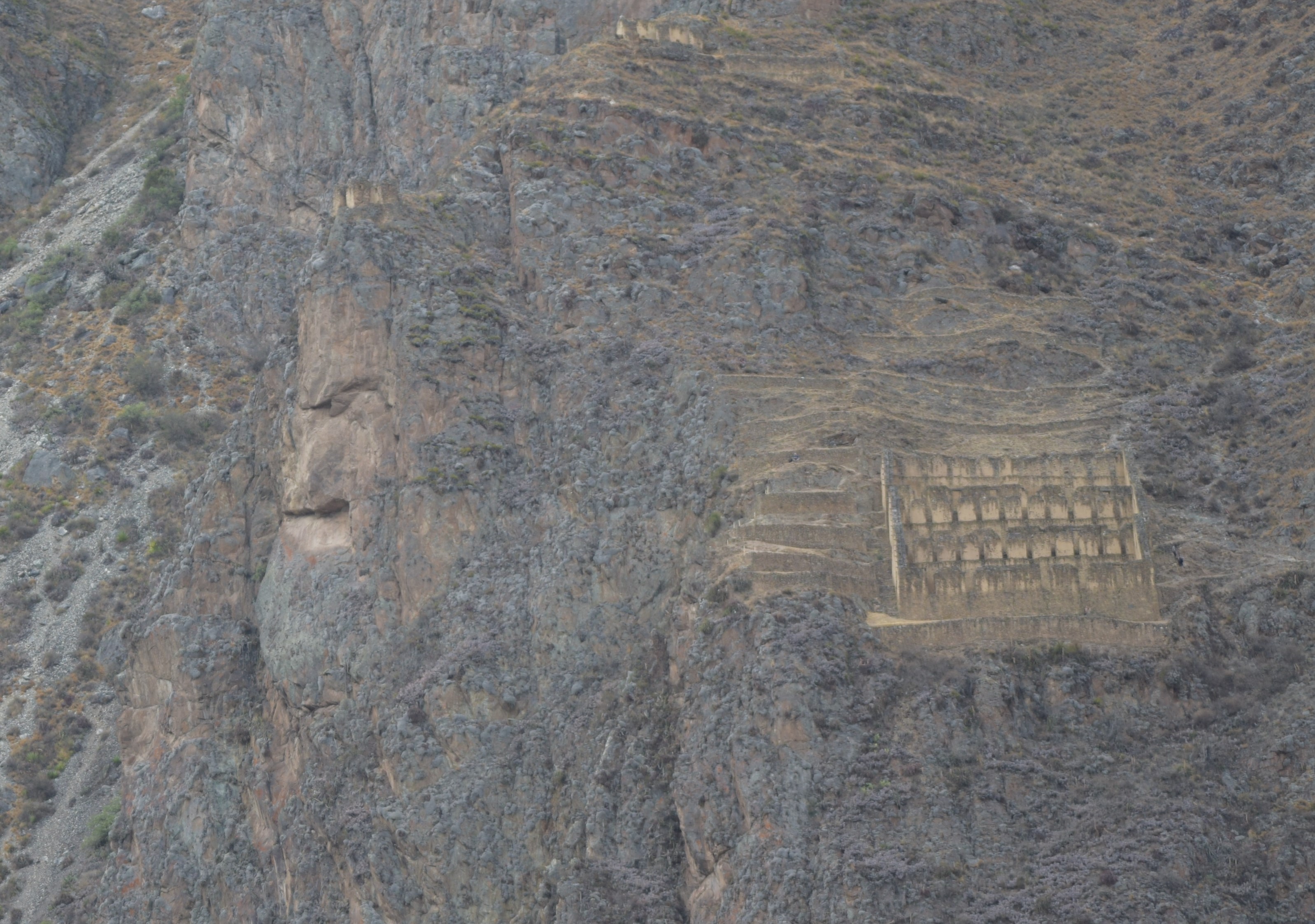 Looking out from the park there is a face carved into the mountain. The face has a beard and other western characteristics and was carved prior to the Spanish conquistadors arrival. There is speculation that other less violent westerners had already been to Peru.