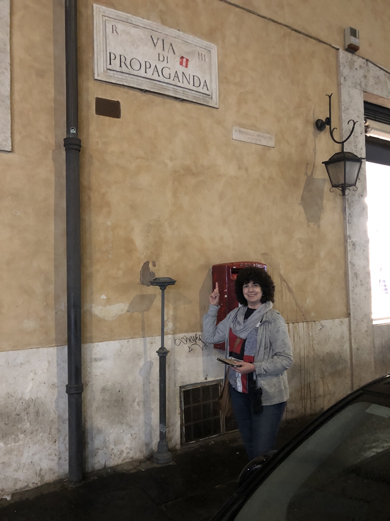 On the way to the Trevi Fountain we walked along the Via Di Propaganda. This is the street where the Vatican published much of its educational material. This has been the headquarters of Catholicism's global missionary operations since 1627.
