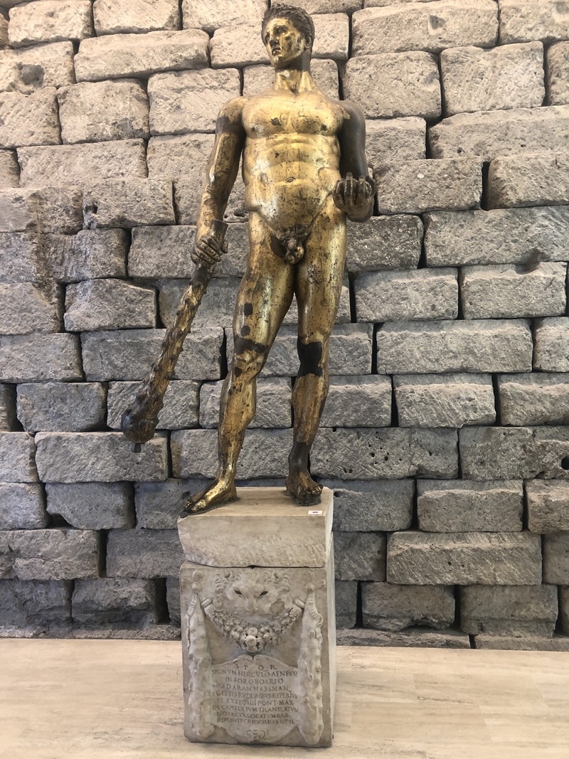 Remaining wall of the Temple of Capitoline Jupiter. The temple became the symbol of Rome. Statue is Hercules from the 2nd Century BC.