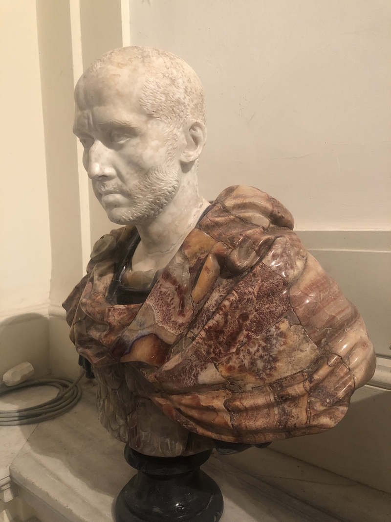 There is a long line of busts of the Roman emporers. They were in power a long time. This picture is only the start.