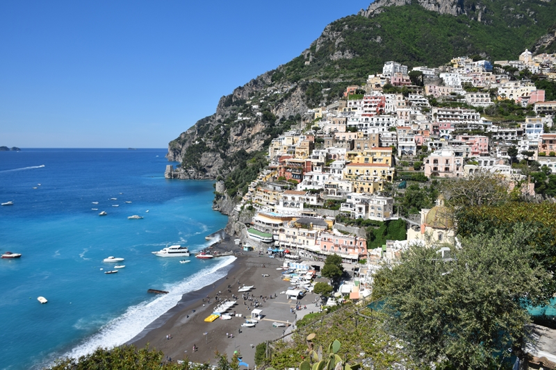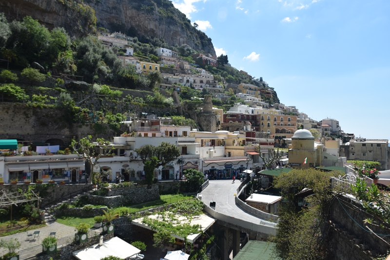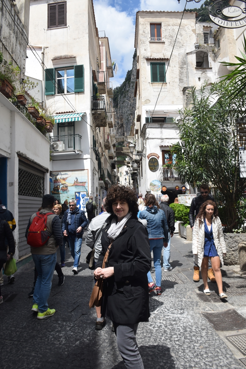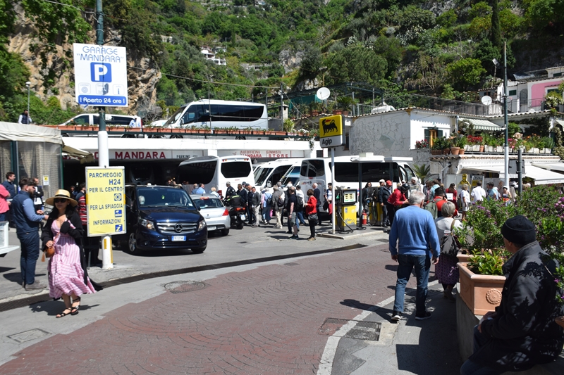 The Amalfi coast is very crowded with tourists and buses have to make reservations and fit into particular time slots. This is where our bus stopped and stayed while we walked around at our first stop in the city of Positano. Our guide was Sandra.