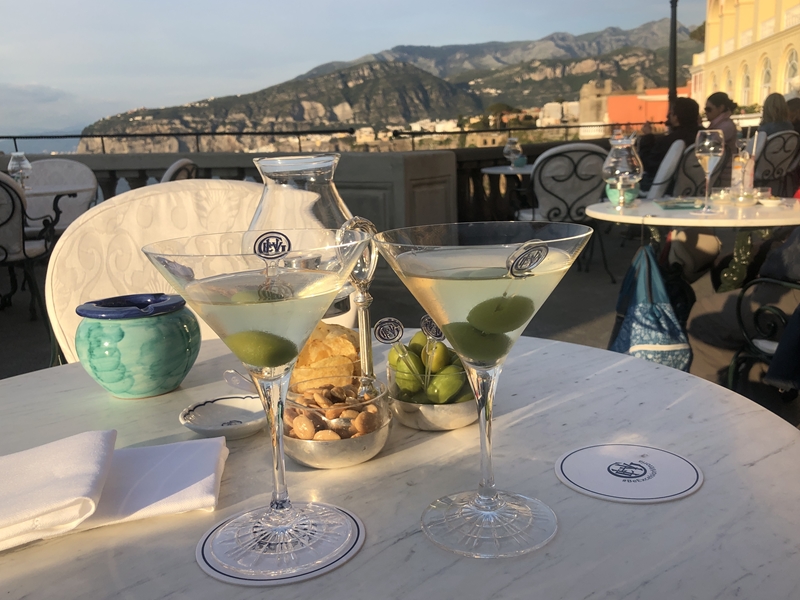 Martini's in Sorrento on the seaside patio of the Grand Hotel Excelsior Vittoria. They also provided nuts, olives and chips and then brought out small sandwiches for us.