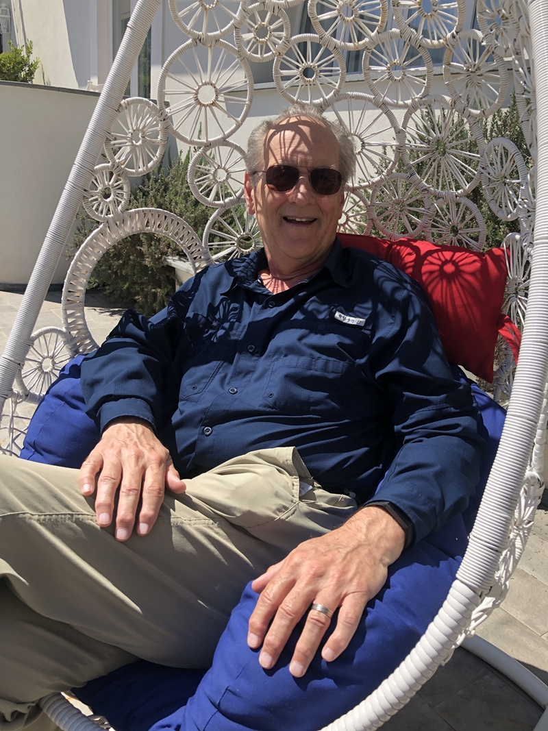 Sitting outside of our hotel. We had a nice breakfast each morning as a part of our stay. It was inside in a breakfast area that they kept the area blocked off except when serving breakfast.