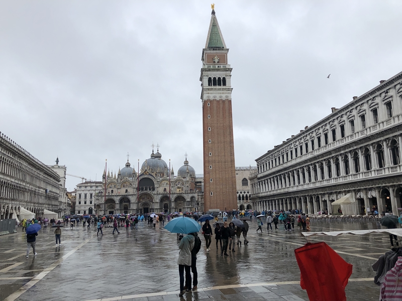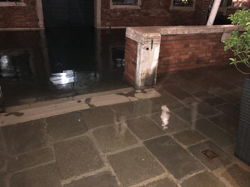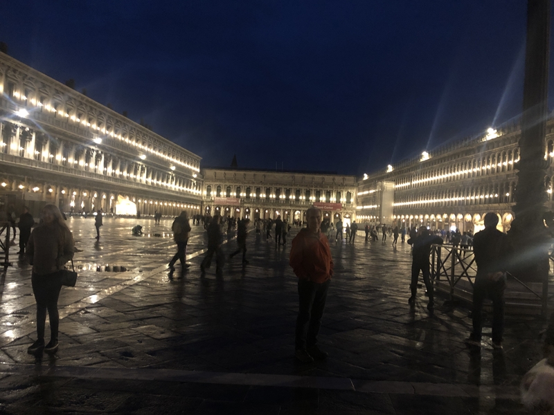 On our first night in Venice we walked into St. Marks Square about 9PM and we noticed water bubbling up through the drains. High water, Aqua Alta, was coming and we immediatly headed back to our hotel. We had to make a couple of detours to get there and our shoes got wet but we got back before it was too deep. Luckily we were close to the hotel.